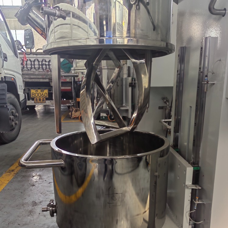 該強(qiáng)力行星攪拌機(jī)操作、清洗方便。生產(chǎn)完物料后,料桶直接液壓提升,方便沖洗。